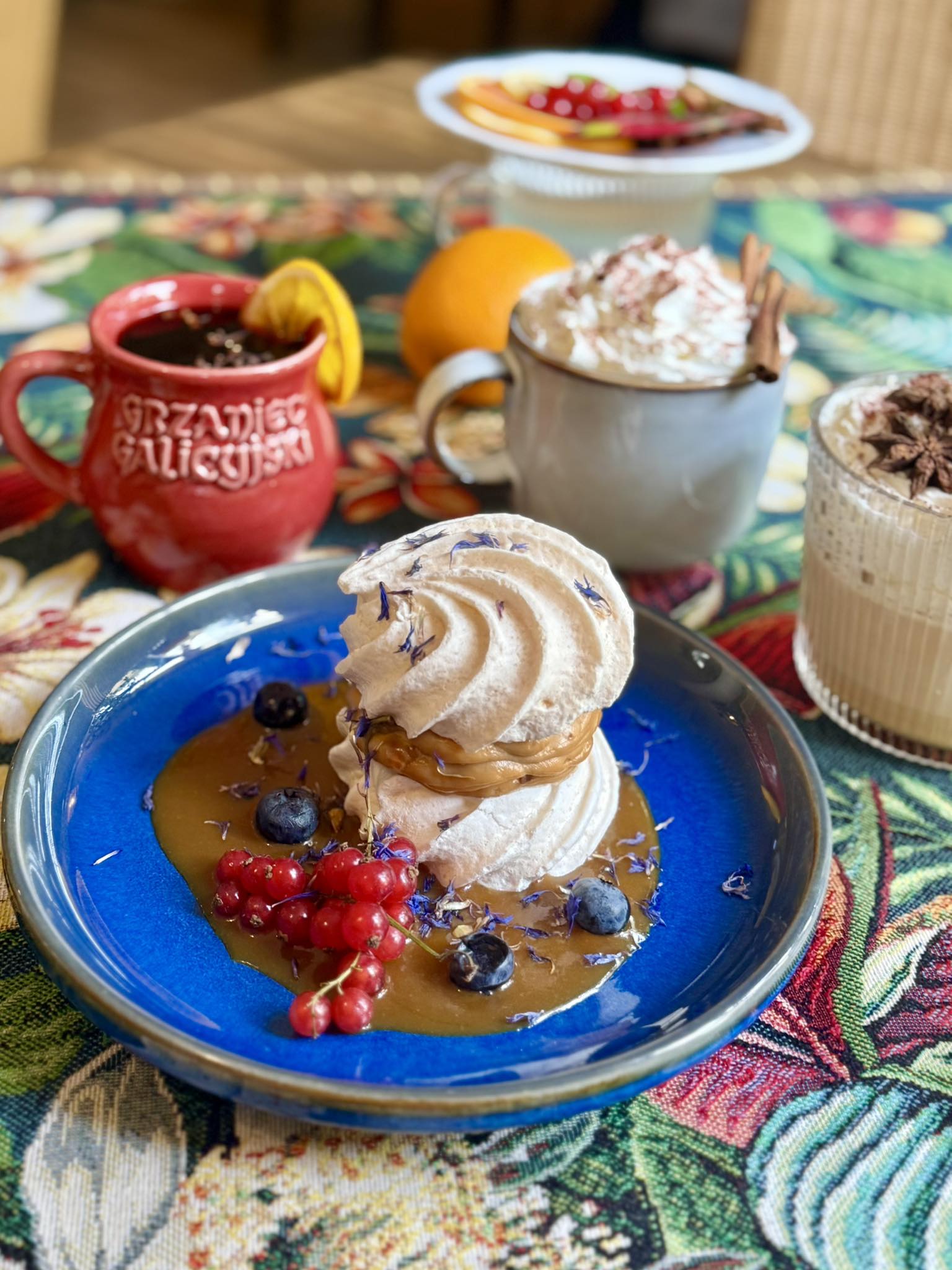 Poza daniami obiadowymi, goście mogą nacieszyć się pysznymi ciastami, naszego wypieku, ogromnym wyborem nalewek, win, drinków i innych alkoholi.